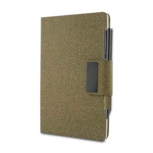 Kit escritório em PU e fibra de café ou chá e Caneta Metalica ACAD445