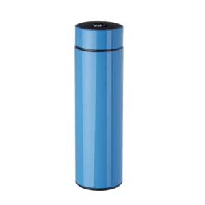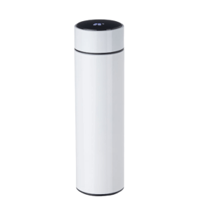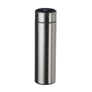 REF: AGA6700Garrafa térmica em aço inox com parede dupla com capacidade de até 450ml com infusor. Display LED com termômetro digital na tampa para indicar a temperatura do líquido. Conserva quente ou frio. Não transpira com bebida gelada. Embalagem caixa branca. Funcionamento com bateria CR2032 (acompanha bateria extra em caso de necessidade de substituição). NCM: 7310.2990