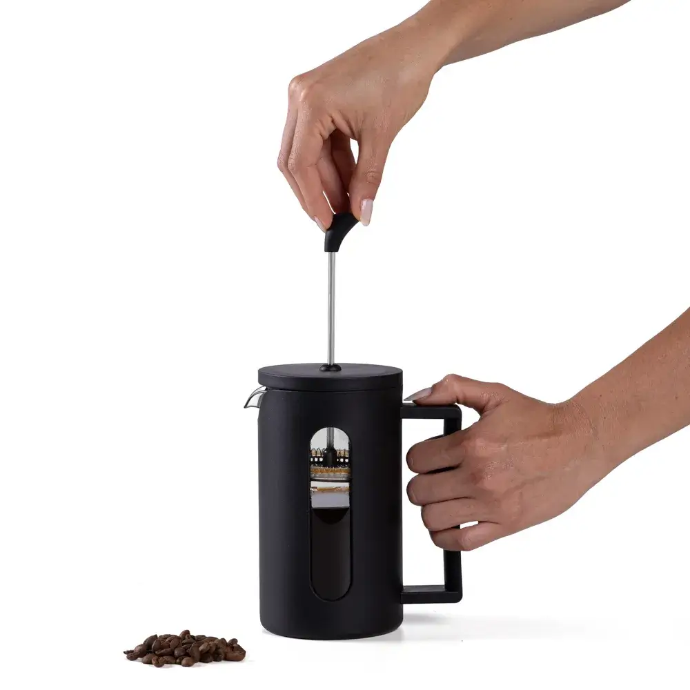 REF: IG00461Cafeteira prensa francesa em Vidro Borosilicato / Plástico PP com capacidade de 600ml. Também pode ser usado para o preparo de chás. Não necessita de filtro para o preparo do seu café/chá. Dimensões: Com alça: 19,2 x 13,5 x 9cm / Sem alça: 19,2 x 9,9 x 9cm.