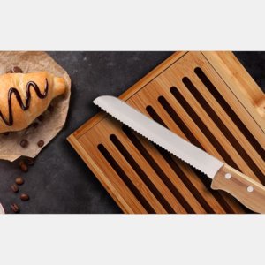 Migalheira em bambu com faca de pão