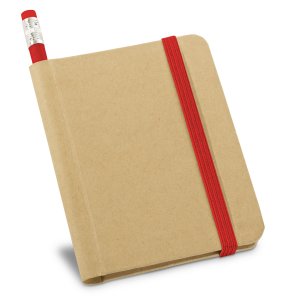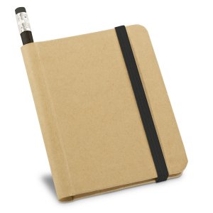 REF: S93422Mini Caderno BRONTE capa dura em papel cartão. Possui 70 folhas não pautadas de papel reciclado tamanho A7 Medidas: 8.2 x 10.5 cm. Incluso lápis. NCM: 4820.20.00.