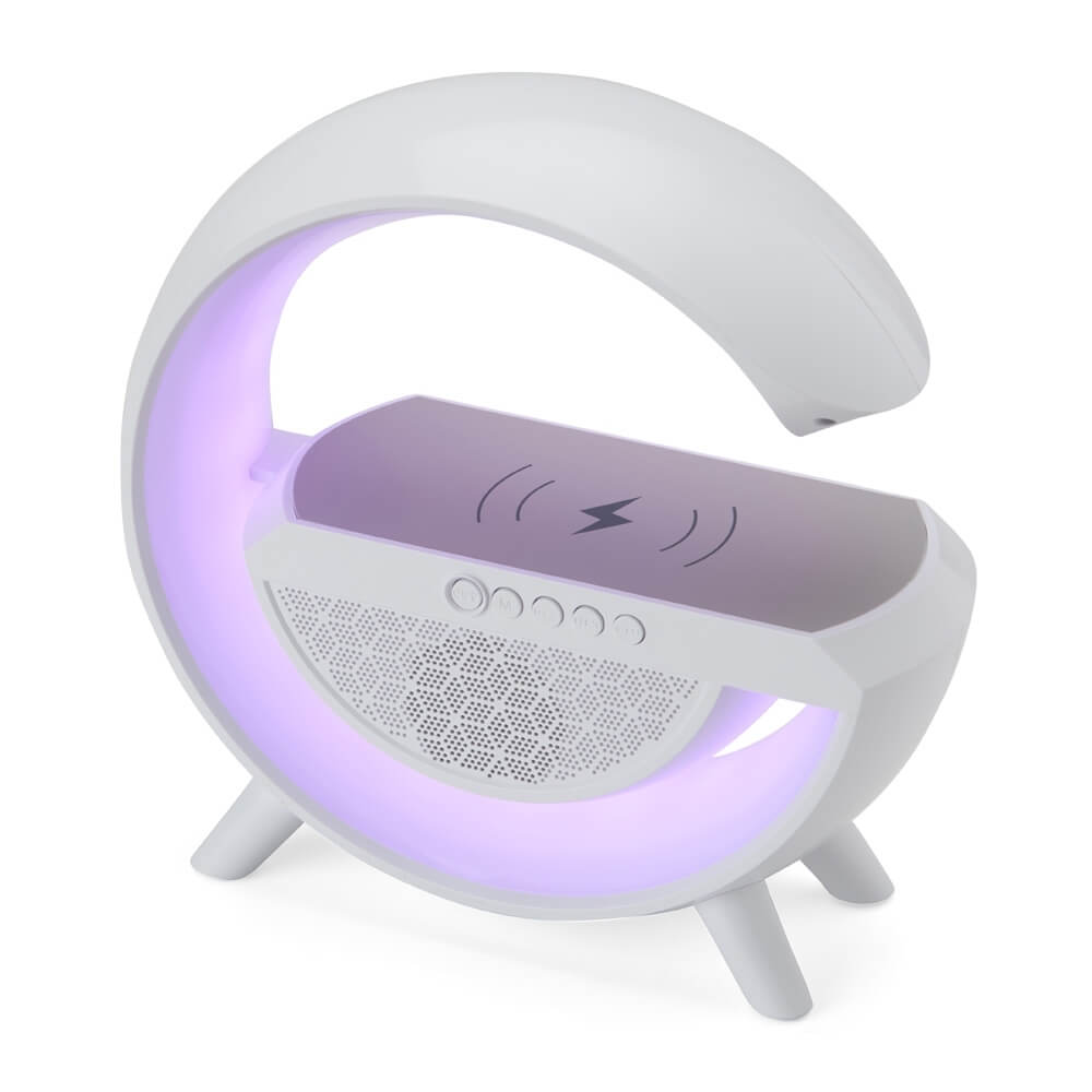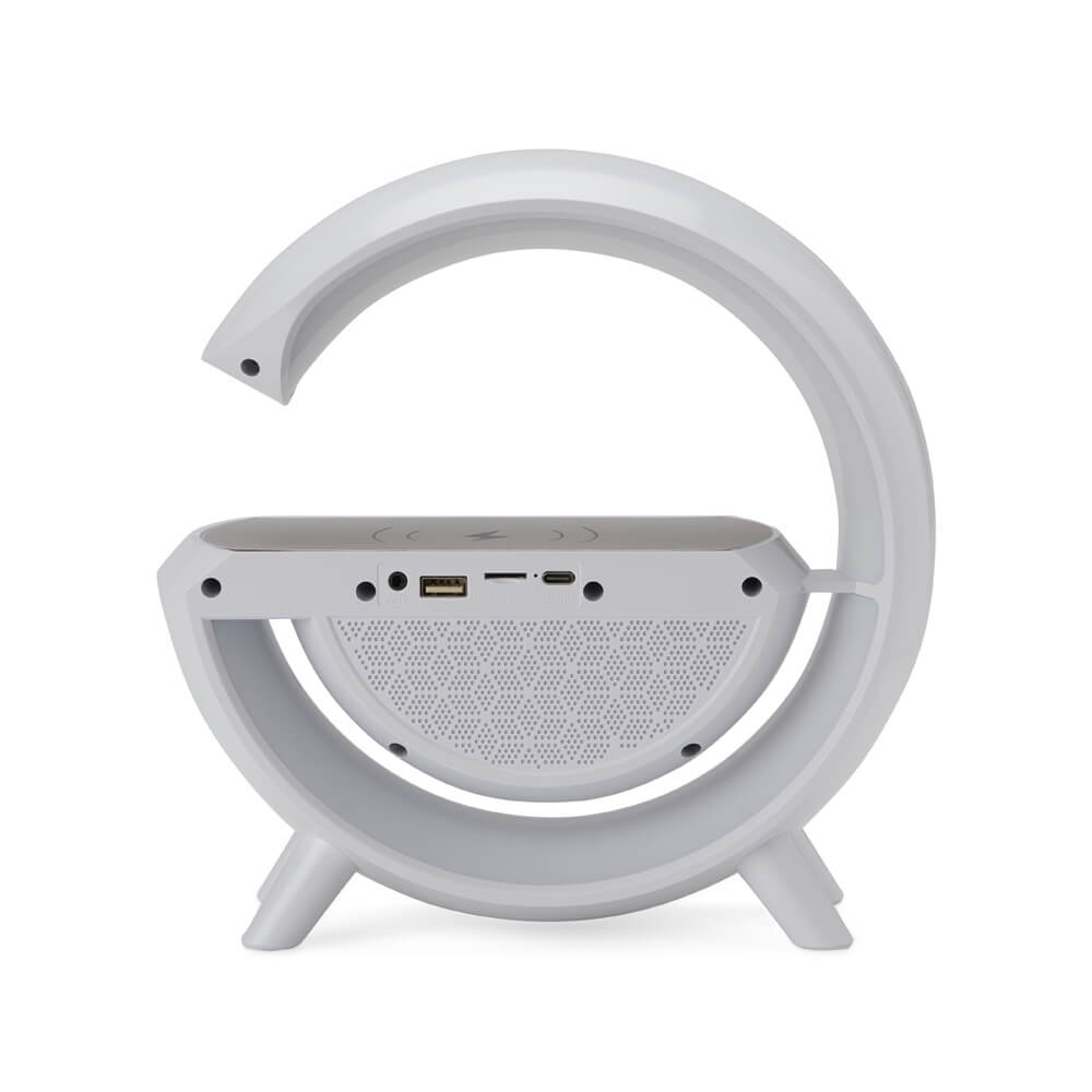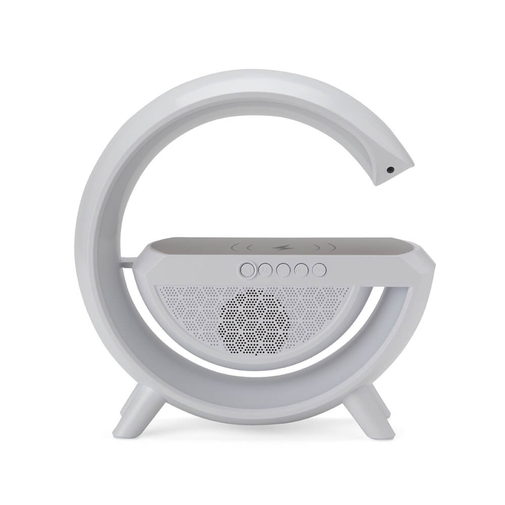 REF: X06093Caixa de som com carregador por indução e luminária. Possui 6 modos de iluminação, opera nos modos bluetooth, rádio FM, auxiliar P2, USB e TF (cartão MicroSD). Para desfrutar do carregamento por indução (sem fio) é fundamental que o celular possua a tecnologia QI, o produto só armazena bateria para funcionamento próprio, para funcionar a indução precisa estar conectado a uma fonte de energia.