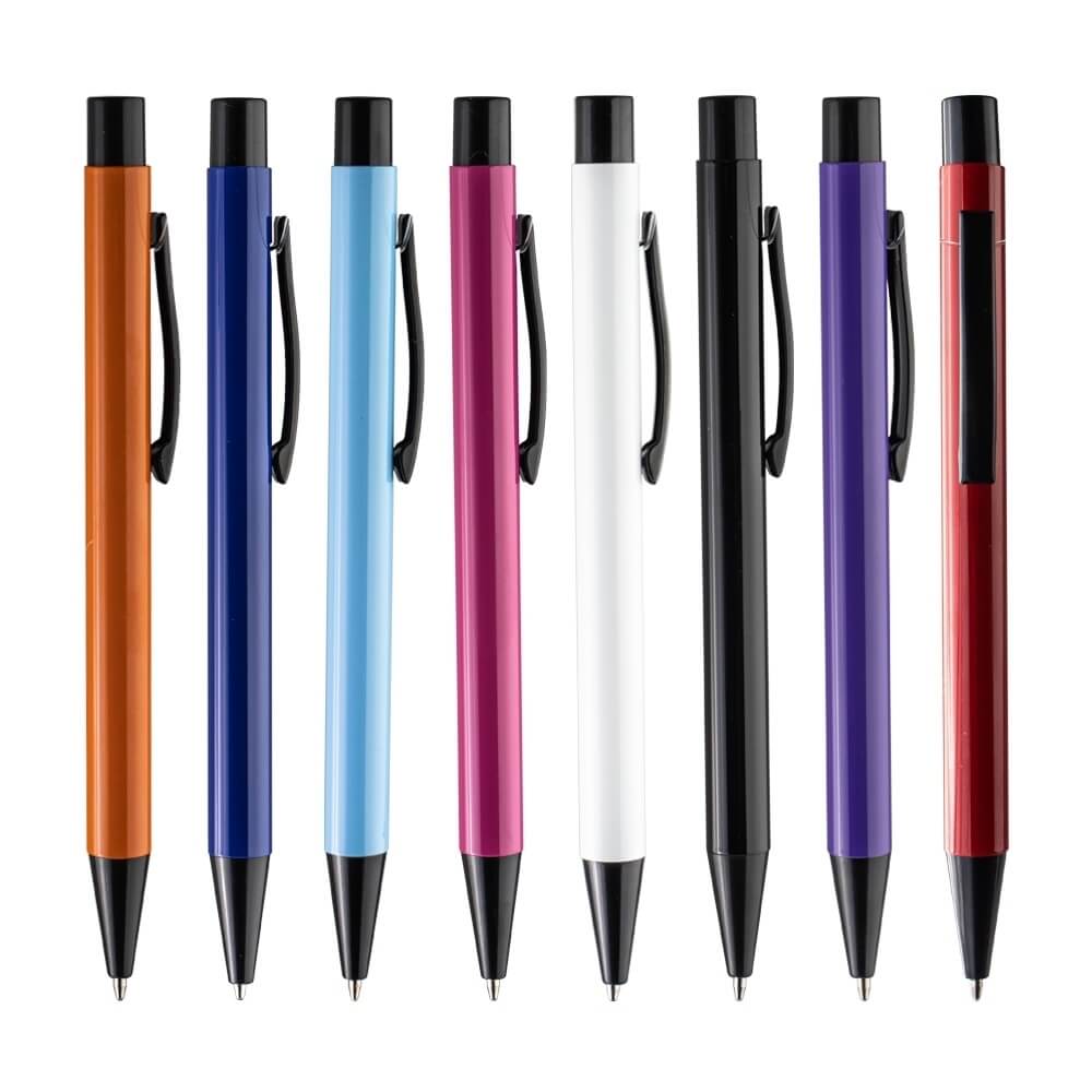 REF: X08268Caneta em metal com acabamento vibrante e acionamento por clique, carga esferográfica azul 1.0mm.