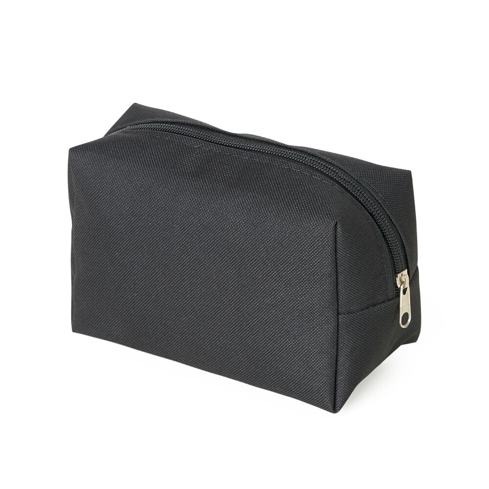 Necessaire de nylon inteira colorida com zíper na parte superior e forro emborrachado.