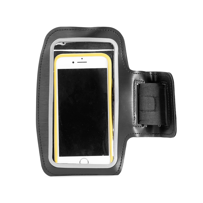 REF: X19058Braçadeira para celular em couro sintético e revestimento posterior em neoprene. Possui capacidade para aparelhos de até 6,5 polegadas, além de visor em plástico e alça de neoprene com fechamento em velcro para ajuste no braço.